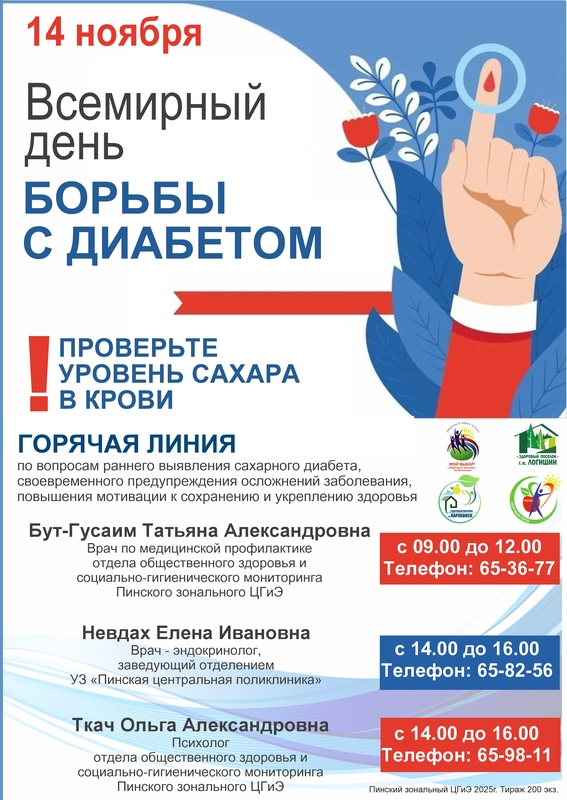 Сахарный диабет входит в тройку заболеваний, чаще других приводящих к тяжелым проблемам со здоровьем. Поэтому целью мероприятий этого дня здоровья является повышение осведомленности общества о сахарном диабете, раннем выявлении и возможностях лечения этого заболевания, его последствиях и мерах профилактики.