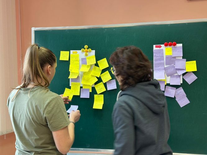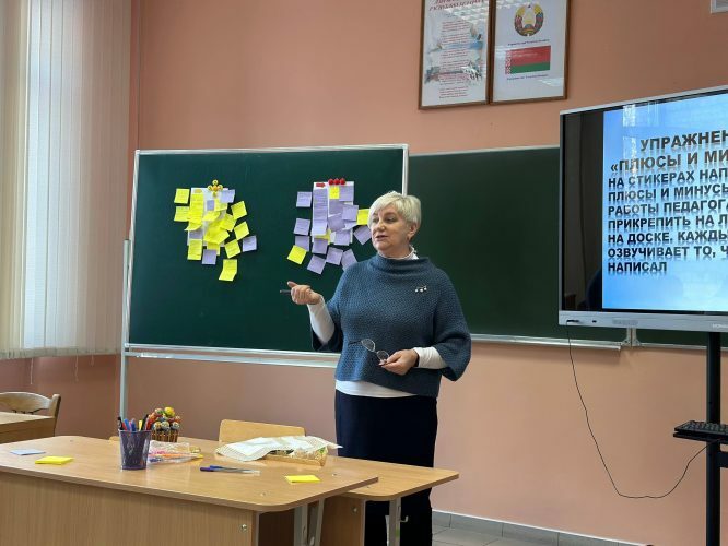 Упражнения были разными для выполнения индивидуальных заданий, работы в парах, работы в командах, в общении без слов. Обсуждали «плюсы» и «минусы» в профессиональной деятельности. Ожидаемый результат оправдался — педагоги пришли к выводу, что плюсов в работе все-таки больше, работа педагога приятна и значима в жизни будущих специалистов.