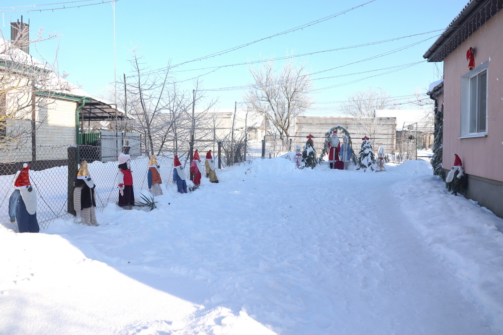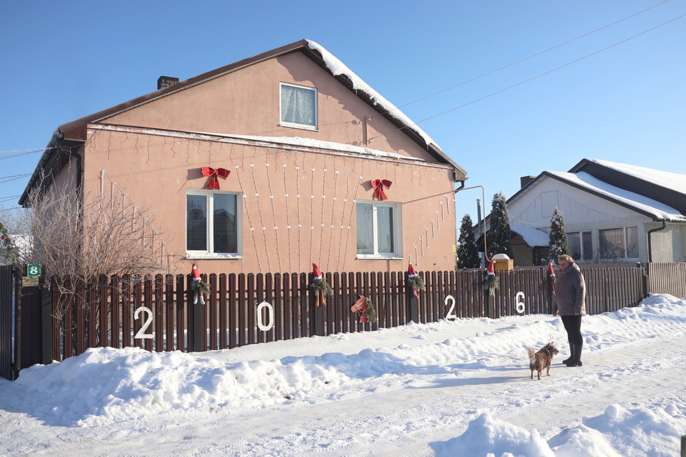 Во дворе Елены Николаевны и ее супруга Адама Адамовича как будто оживают страницы сказок: вот Дед Мороз со Снегурочкой у красивой арки, рядом – сани, дальше вдоль забора – Белоснежка и семеро ее верных гномов. На одной из стен дома – коллаж из хвойных веток и шаров в виде елки, на лицевой стороне ограждения усадьбы – надпись «2026» и изображение символа года – красной лошади. И еще много других художественных элементов. А вечером все это, включая дом, подсвечивается замысловатой паутиной из сотен метров новогодних гирлянд. Должно быть, этот дом виден из космоса.