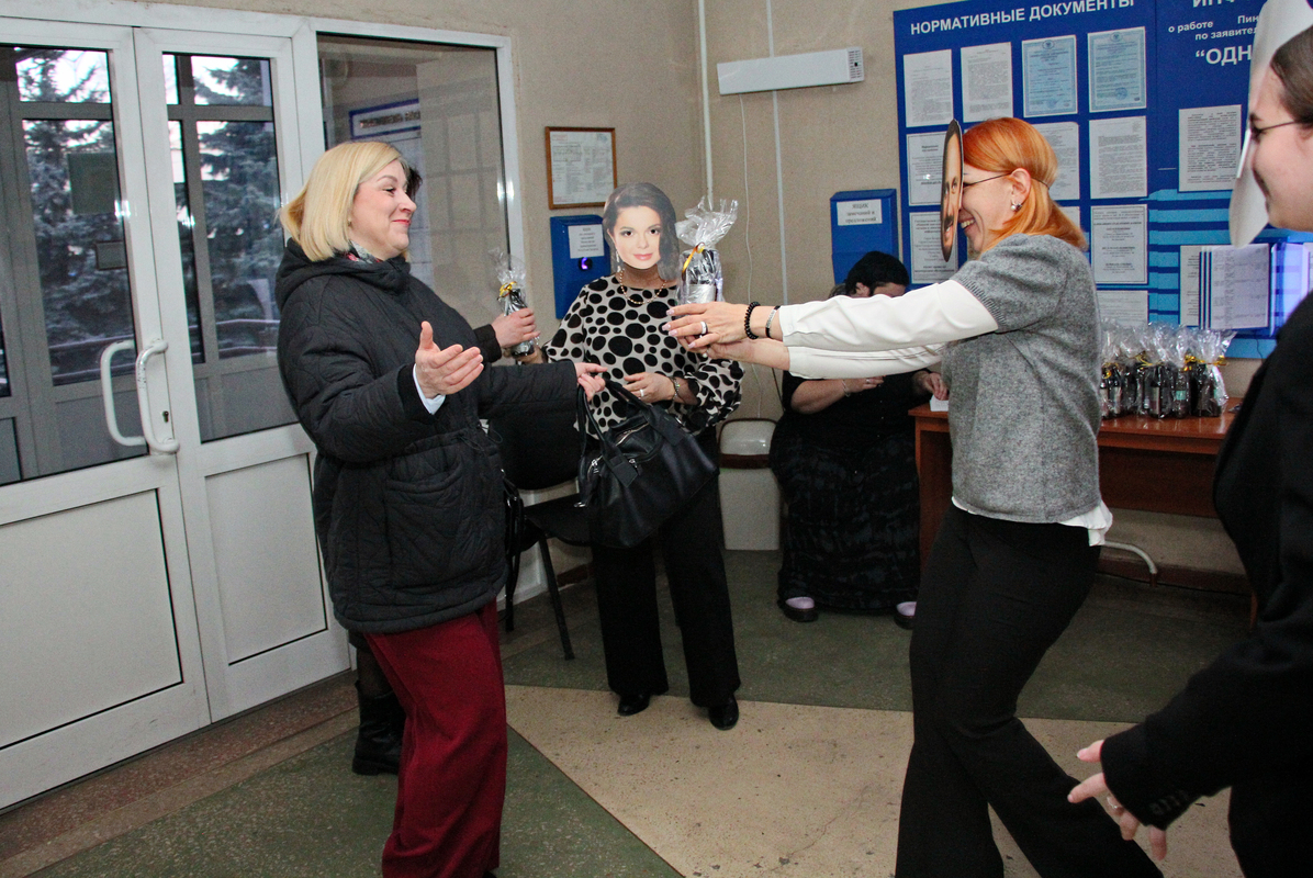 В Пинском зональном ЦГиЭ прошло поздравление женского коллектива с наступающим международным женским днем 8 Марта! С самого утра звезды российской эстрады вручали подарки прекрасной половине человечества – сотрудницам центра. С наступающим Вас!!! Крепкого здоровья, любви и счастья, дорогие наши женщины!!!