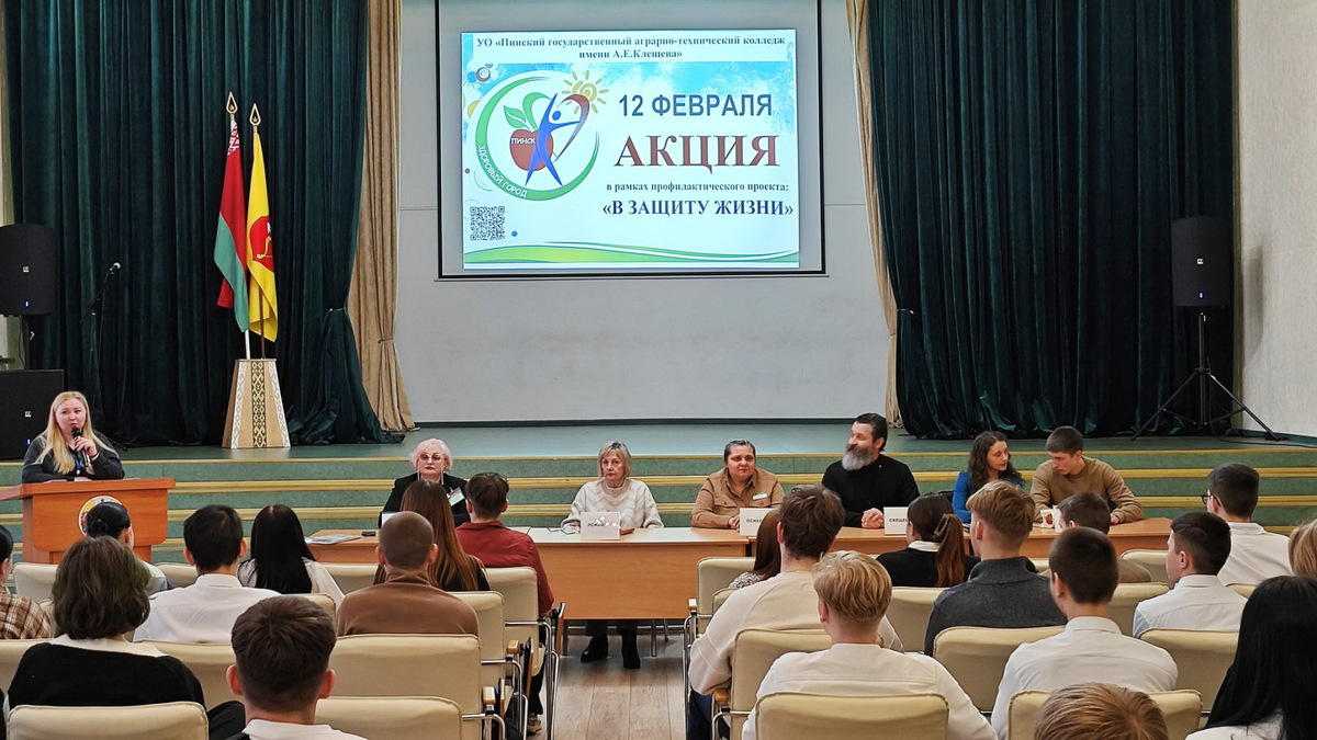 На базе Пинского государственного аграрно-технического колледжа им. А.Е. Клещева, как сообщила врач по медицинской профилактике отдела общественного здоровья и социально-гигиенического мониторинга Пинского зонального центра гигиены и эпидемиологии Татьяна Бут-Гусаим, в рамках профилактического проекта «В защиту жизни!» сотрудниками центра совместно с администрацией учреждения образования, представителями учреждений здравоохранения, Пинской епархии для учащихся вторых курсов проведен семинар по формированию здорового образа жизни.