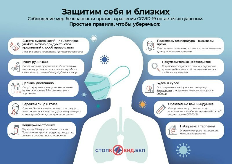 СОБЛЮДЕНИЕ МЕР БЕЗОПАСНОСТИ ПРОТИВ ЗАРАЖЕНИЯ СОVID-19 ОСТАЕТСЯ АКТУАЛЬНЫМ. СОБЛЮДАЙТЕ ПРОСТЫЕ ПРАВИЛА, ЧТОБЫ УБЕРЕЧЬСЯ